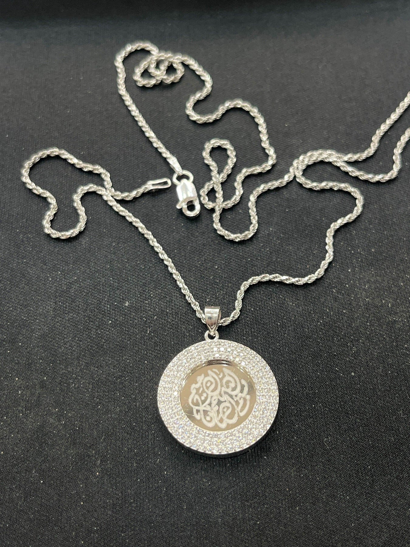 Design: Classic disc necklaces feature the phrase Bismillah engraved or molded onto a round, flat medallion. These necklaces are available in multiple design options, including various metal finishes.
